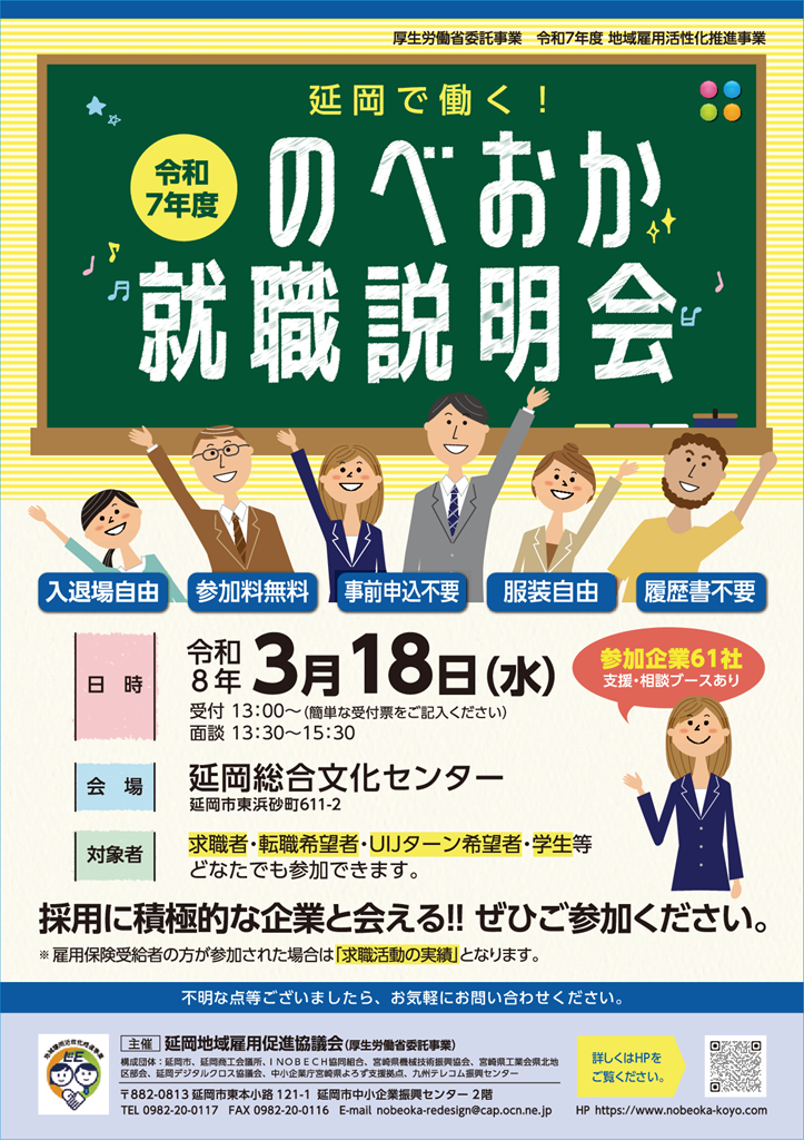 MFマテリアルは、宮崎県延岡市で3月18日(水)に開催される「令和7年度 のべおか就職説明会」に参加します。